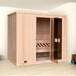Эта модель финской сауны для любителей оригинального дизайна и уникальных вещей. Качественная канадская древесина и широкие стеклянные двери не только шикарно смотрятся, но и удобны и практичны в использовании.